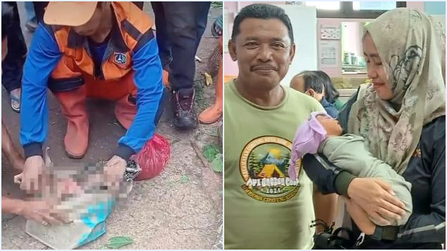 Bayi tersebut ditemukan dalam keadaan hidup di dalam goodie bag oleh warga dan petugas Pengelola Prasarana dan Sarana Umum (PPSU) yang sedang melakukan pengabdian kepada masyarakat.