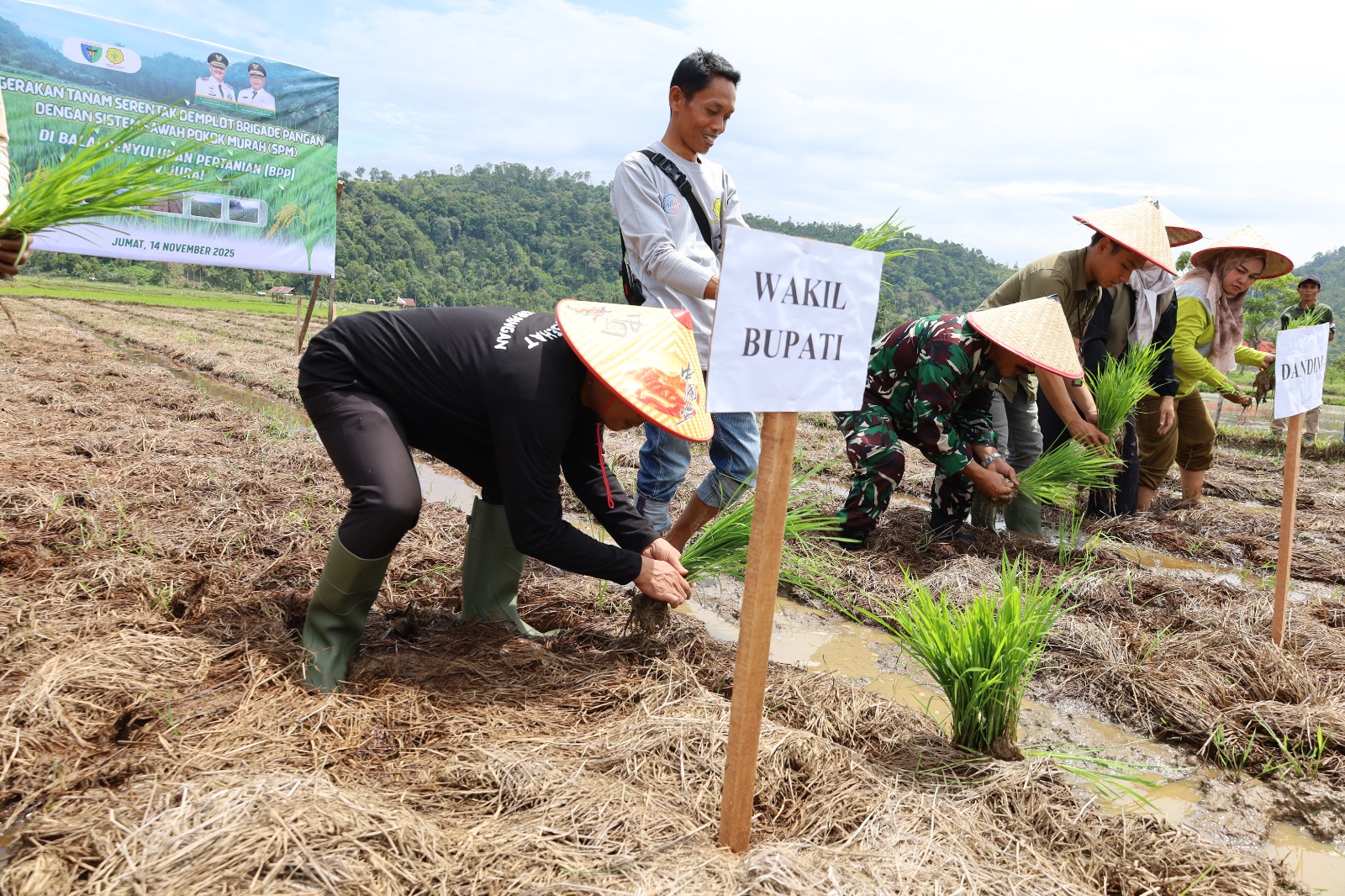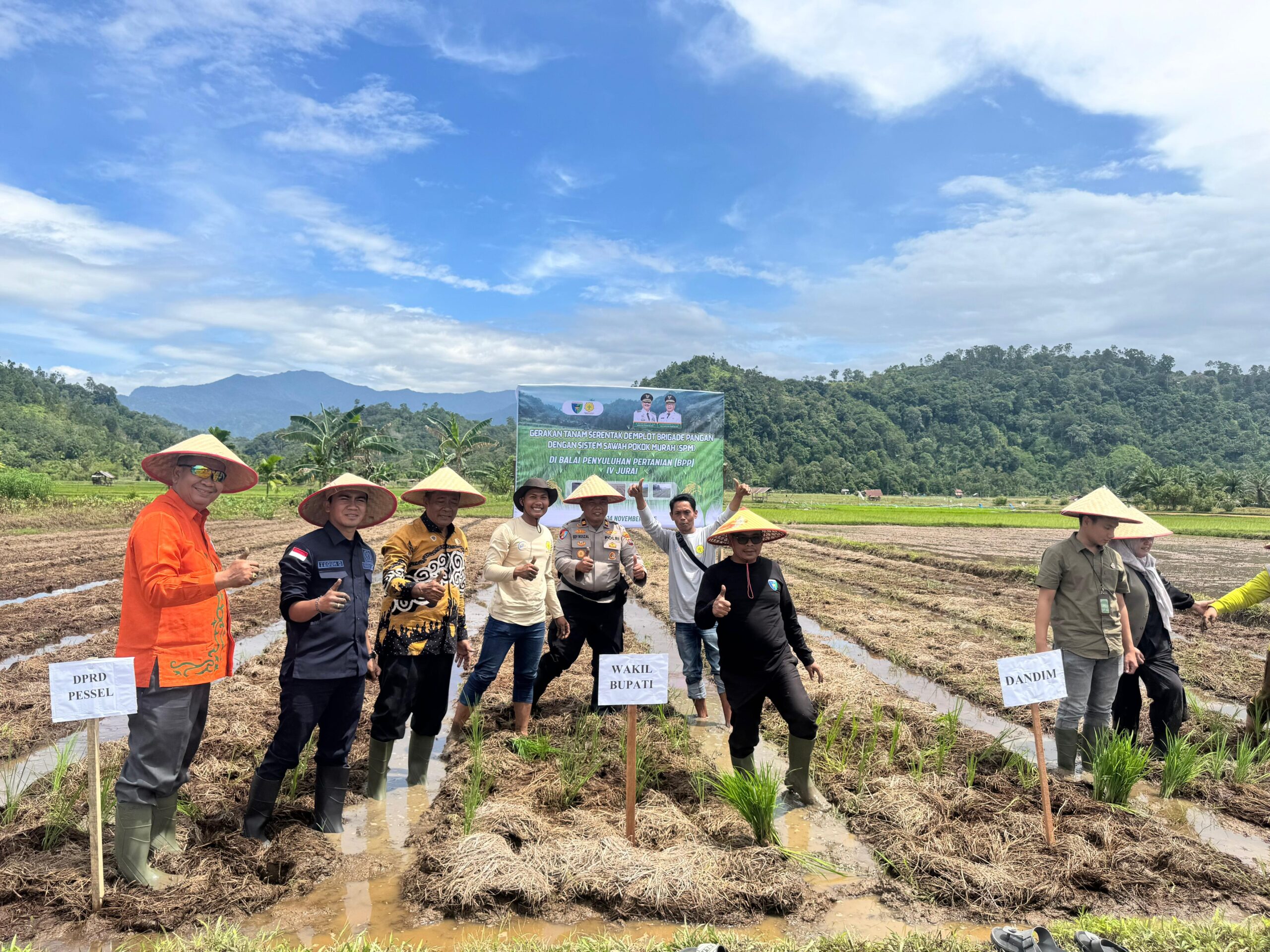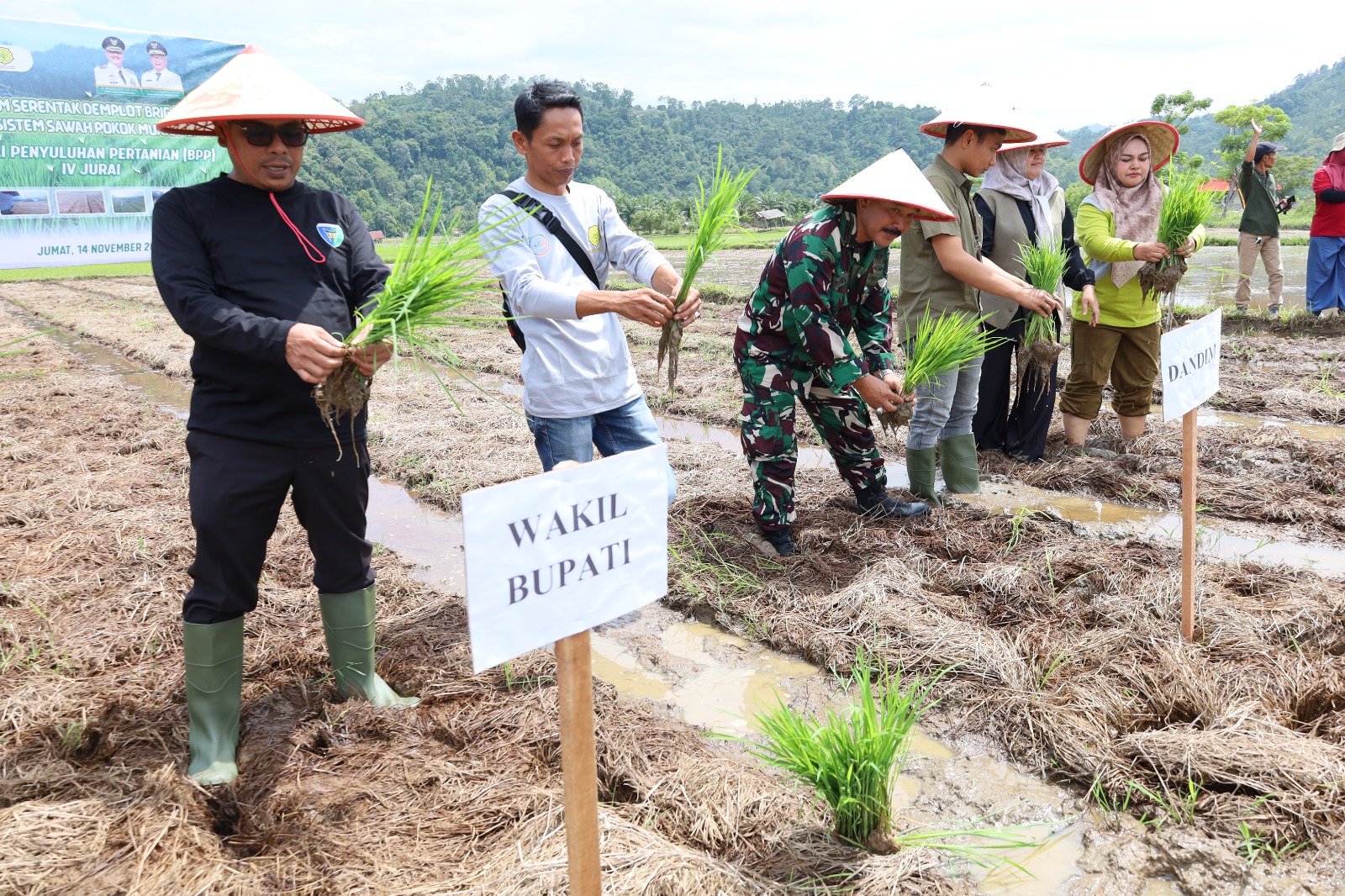 Usai meresmikan kegiatan, Wabup Risnaldi turun langsung ke sawah dan ikut menanam padi bersama petani, OPD terkait, dan brigade pangan sebagai simbol dimulainya tanam serentak MTOT di Kecamatan IV Jurai.