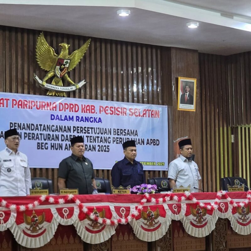 BANDASAPULUAH.COM – Bupati Pesisir Selatan Hendrajoni menghadiri Rapat Paripurna DPRD Kabupaten Pesisir Selatan dalam rangka penandatanganan persetujuan bersama Rancangan Peraturan Daerah (Ranperda) tentang Perubahan Anggaran Pendapatan dan Belanja Daerah (APBD) Tahun 2025.