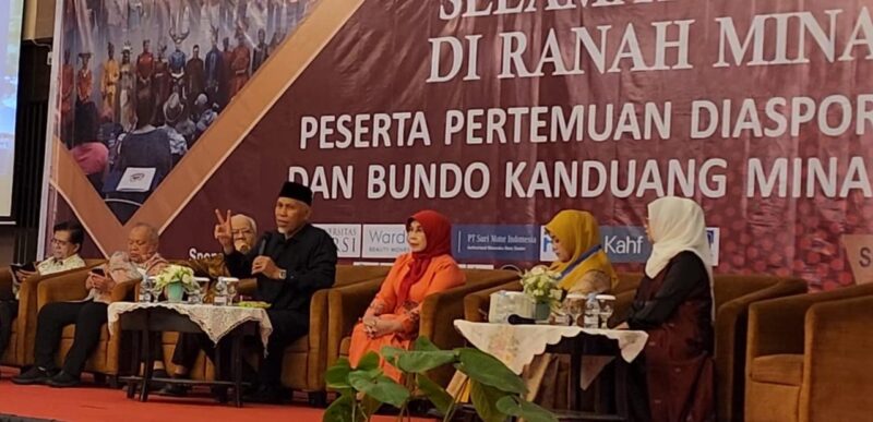BANDASAPULUAH.COM – Gubernur Sumatera Barat, H. Mahyeldi Ansharullah, tampil sebagai salah satu pembicara kunci dalam Pertemuan Diaspora Minang dan Bundo Kanduang Minang Sedunia yang digelar di Hotel Pangeran Beach Padang, Selasa (5/12/2023).