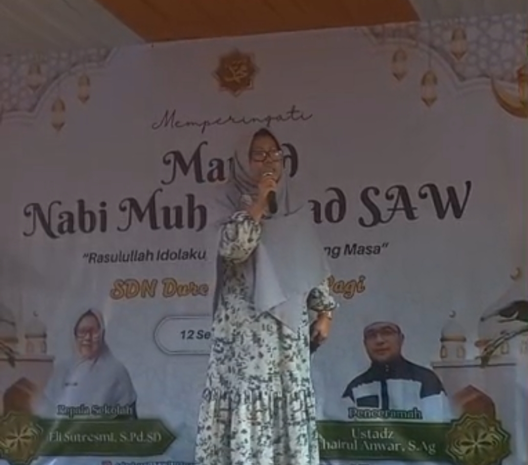 Kepala Sekolah SDN Duren Sawit 07 Pagi, Eli Sutresmi, S.Pd., SD, menyampaikan apresiasinya atas terselenggaranya peringatan Maulid Nabi Muhammad SAW di sekolah.